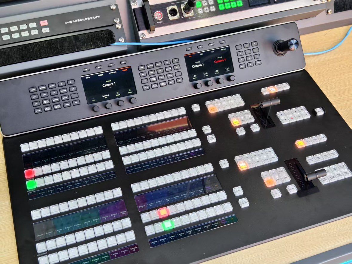 直播车的制作核心采用了ATEM 2 M/E Constellation 4K切换台,搭配ATEM 2 M/E Advanced Panel 20控制面板。切换台支持多格式信号接入与转换,集成色键抠像、创意转场、媒体池等功能,制作人员可借助面板的T-bar推杆与专业摇杆,实现节目间平滑过渡,其多画面分割功能让导播在单台监视器上掌控所有机位动态,精准捕捉赛事关键瞬间或活动高光时刻,大大提升了制作效率和系统协同性。