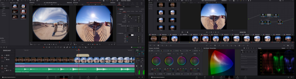 在剪辑页面中,您可以像处理其他2D媒体一样,使用熟悉的剪辑界面处理URSA Cine Immersive摄影机的文件。