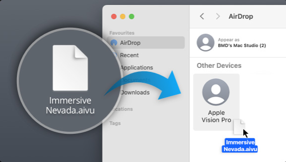 使用Apple沉浸视频预设渲染您的项目。然后将渲染后的AIVU隔空投送到您的Vision Pro。这样沉浸式视频就会存