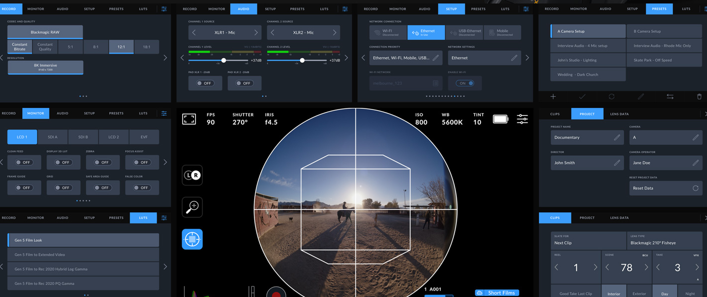 采用免费iOS版Blackmagic Camera APP几乎可以在片场的任何地方获得Blackmagic URSA Cine Immersive的全