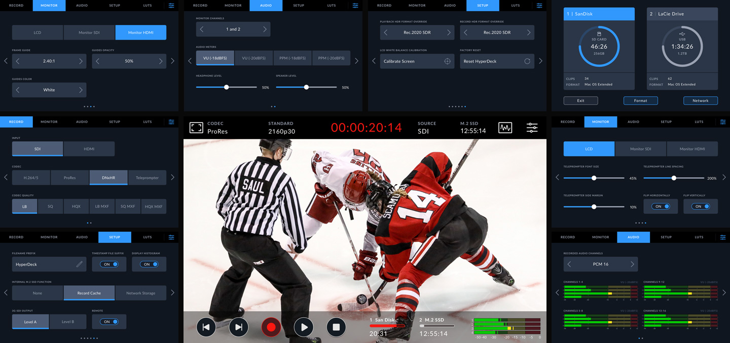 采用台式设计的HyperDeck型号,现场制作期间进行片段播放的理想设备!