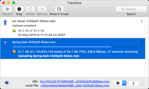 更强大的HyperDeck Shuttle 4K Pro型号设有快速10G以太网。其网络速度非常快,可让多名剪辑师和调色师同时通过网络来访问内置HyperDeck M.2存储。您还可以通过HTTP/S网页界面或FTP客户端来轻松传输文件。针对播出自动化控制,HyperDeck使用以太网接口和简单的基于文本的协议,只要使用Telnet客户端就能进行测试。此外,它还支持REST协议,可自定义自动化操作,这在操作手册里进行详细介绍。因此,HyperDeck Shuttle 4K Pro是一款功能完备,用于摄取、媒体文件管理以及播放的广播级服务器。